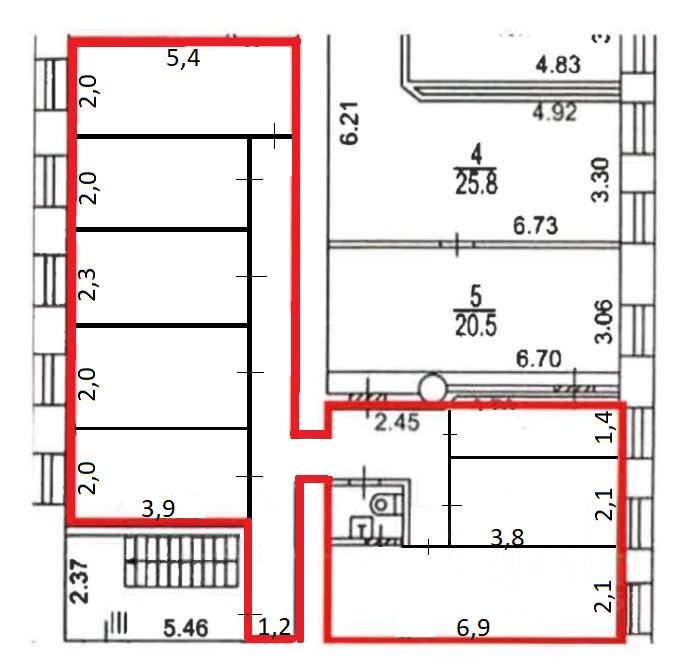 Помещение на третьем этаже в здании без лифта.