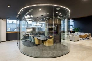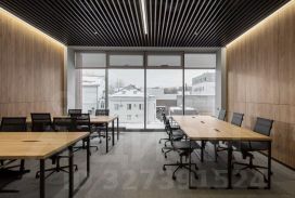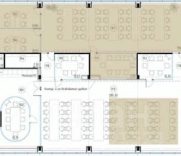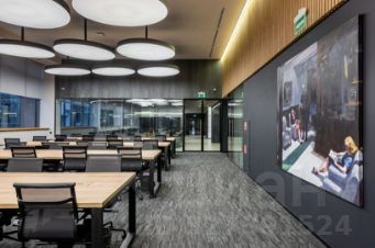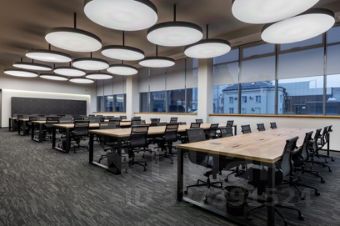 Описание помещения: Офис рассчитан на 94 рабочих мест. Планировка включает в себя изолированный блок, состоящий из open-space на 40 рабочих мест, 4 кабинета вместимостью 6 рабочих мест каждый и 30 дополнительных рабочих мест в open-space. Есть своя кухня и санузлы.