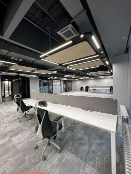 Планировка: open space, 8 изолированных кабинетов , переговорные, кухня, гардеробная при входе, санузлы, душевая.