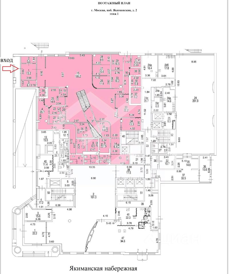 1105675. Предлагаем в аренду помещение под офис/банк площадью 1235.8 кв. м, расположенное в бизнес-центре "Голутвинский двор"