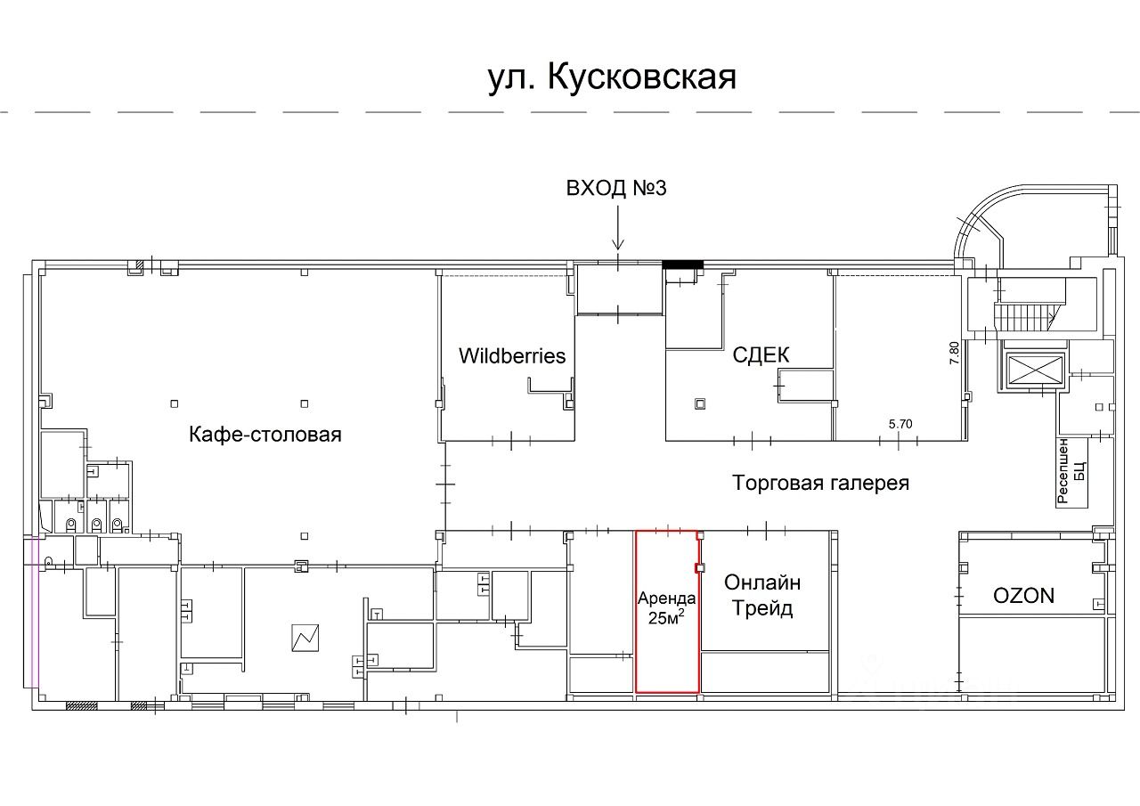 Аренда от собственника! Помещение под кафе 25 м² в торговой галерее Бизнес Комплекса Кусково у м.Перово.