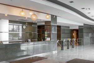 — 4 пассажирских и 1 грузовой лифт, пандус в зоне разгрузки;