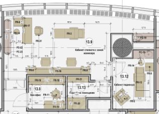 Общая площадь — 55 м², дополнительно — просторная и представительная зона ресепшен — 31 м².