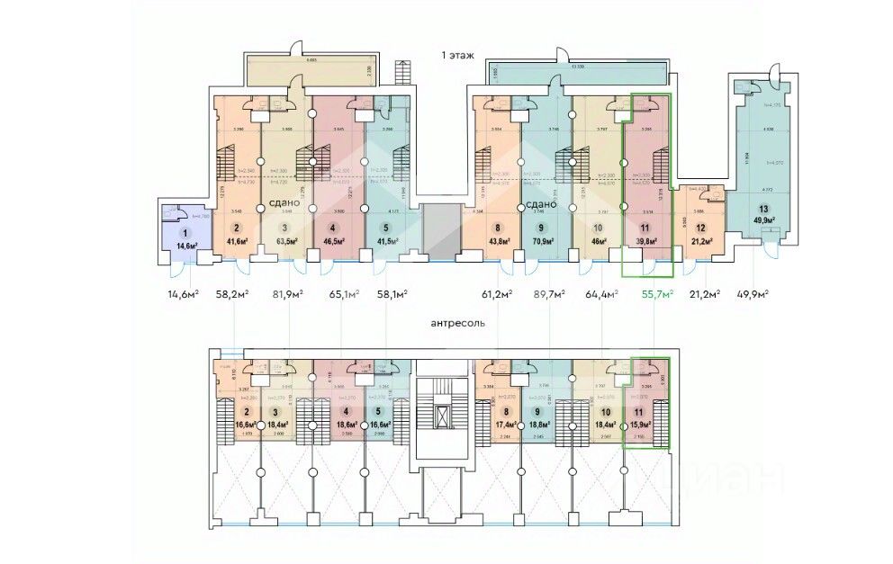 814243. Предлагаем торговое помещение, площадью 55,7 кв. м., расположенное на первом этаже и антресоли жилого дома.