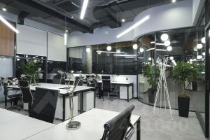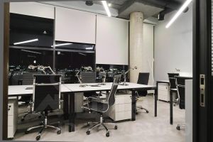 • Планировка смешанная: открытые залы сотрудников, кабинеты, переговорные комнаты, кухня, серверная, ресепшн, с/у, зона руководства.