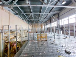 Высота потолка 4-10.06 м. (рабочая высота склада до ферм перекрытия - 7,5 м);