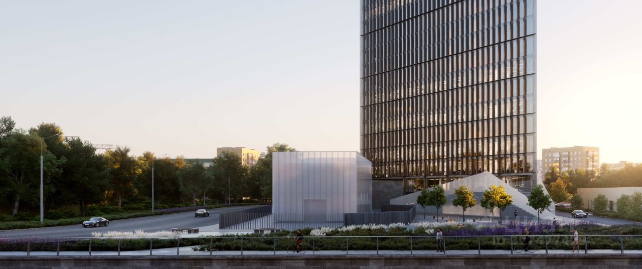 Два нижних этажа занимает лобби. Первый этаж разделен на несколько функциональных пространств: зона курьерской доставки, коворкинг для сотрудников, сервисные офисы, места для отдыха гостей, торговая зона с рестораном, кафе и магазинами. Подземные этажи здания отведены под двухуровневый паркинг, внутри которого расположится 250 машино-мест и зарядные устройства для электрокаров.