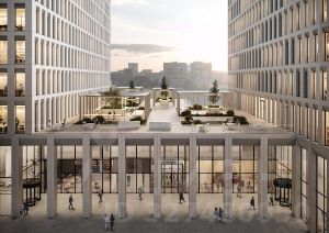 В двухуровневом стилобате разместится вся необходимая инфраструктура: торговые помещения, кафе, рестораны, столовая для сотрудников, аптеки, банкоматы, фитнес-центр.