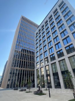 В бизнес центре есть свой подземный и наземный паркинг, а также торговая галерея.