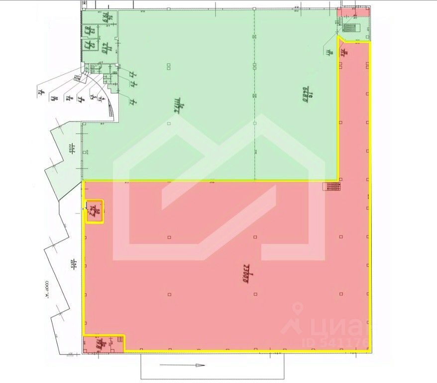 Площадь: 2300 м2, включая офисную часть, кухню и санузлы.