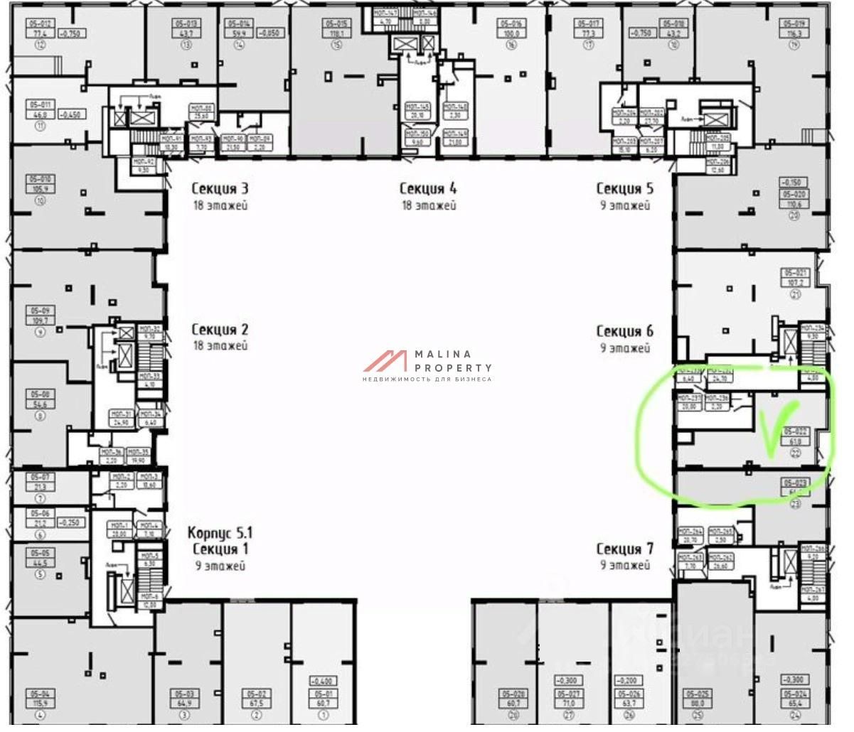 Помещение 61,8 м2 располагается на 1 этаже, открытая планировка, отдельный вход с фасада, высота потолка 4,41 м, витринные окна по фасаду. Электрическая мощность 12,36 кВт. Помещение в бетоне.