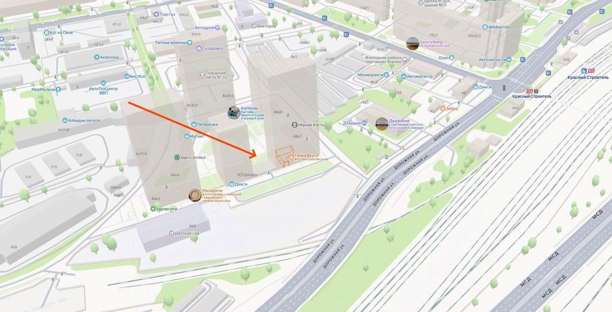 Комплекс полностью сдан и заселен. Количество жителей в локации около 8000 человек. Весь ЖК физически огорожен (промзона, тупики - см. карту). Единственный удобный выход к метро, автобусу, D2 - проходит именно мимо нашего помещения. 2 въезда в ЖК, но основной поток заезжает и выезжает со стороны нашего помещения - рядом с удобным выездом на СВХ, МКАД.