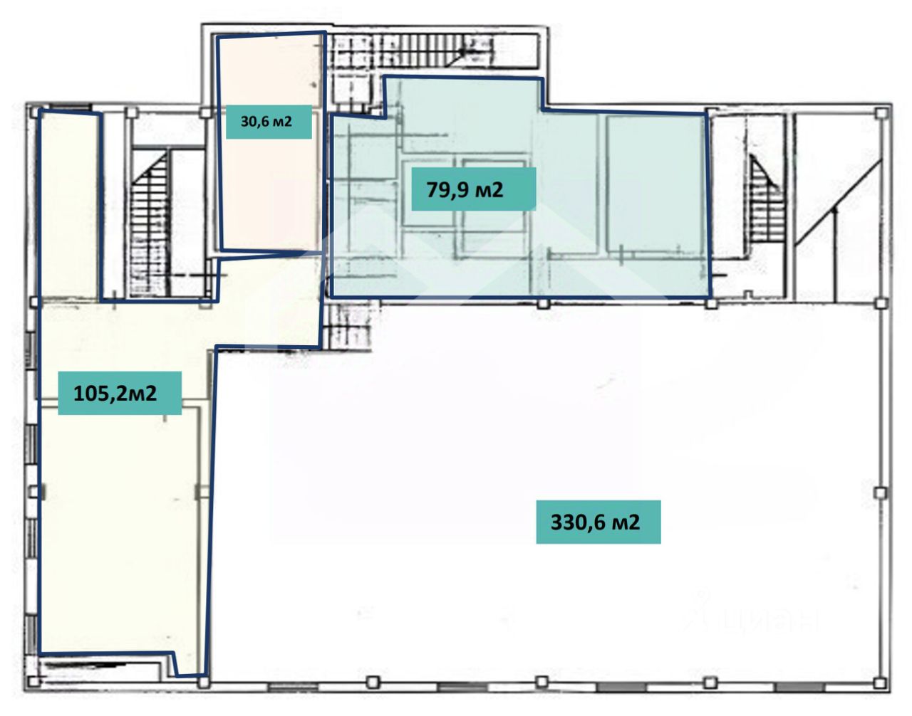 Площадь цокольного этаж: 599,5 кв. м.