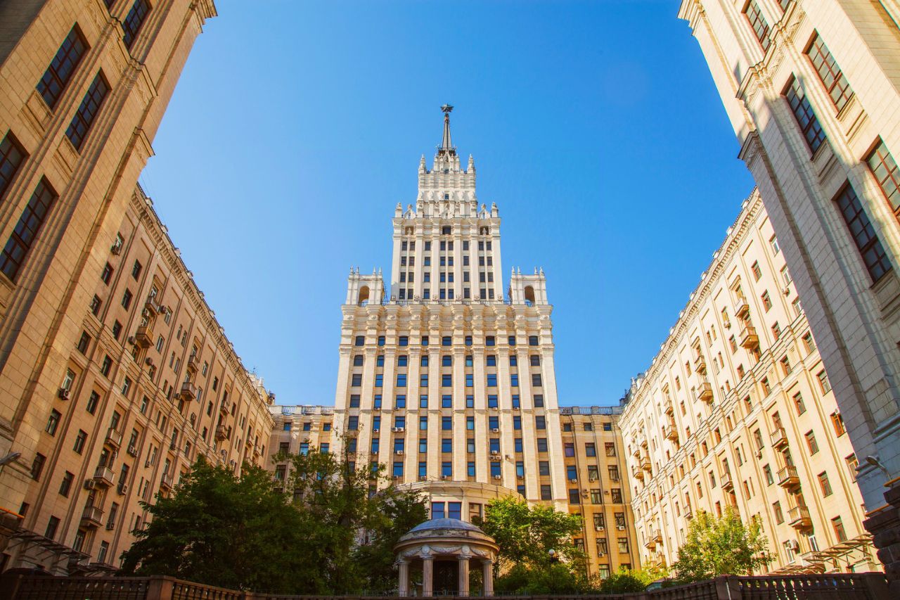 Статусная архитектура: одна из семи легендарных сталинских высоток, признанная шедевром архитектуры с монументальными фасадами и высокими потолками;