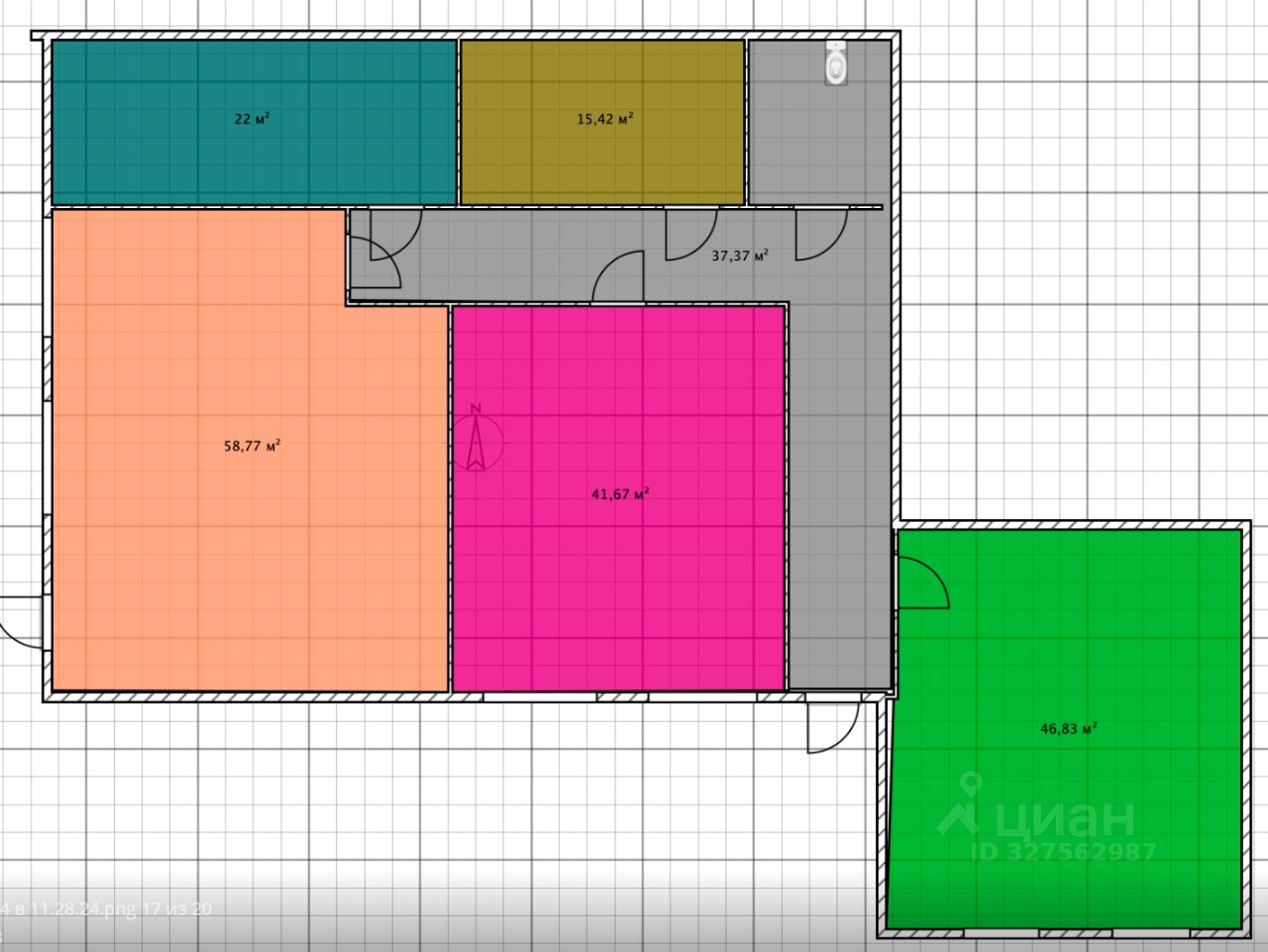 Уникальная возможность сделать перегородки и мокрые точки под ваши задачи/цели. На фото показан пример того как будет выглядеть помещение после ремонта.