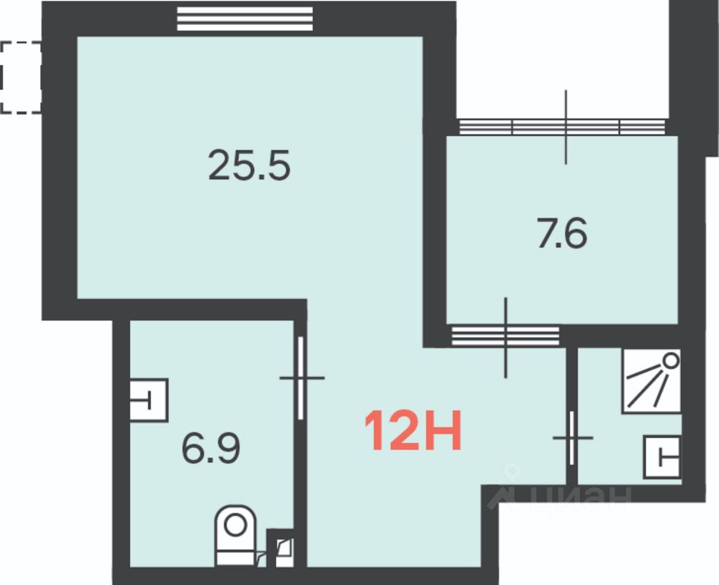 - Оптимальная площадь (42,8 кв.м.), высокие потолки 4,35 м. и функциональная планировка.
