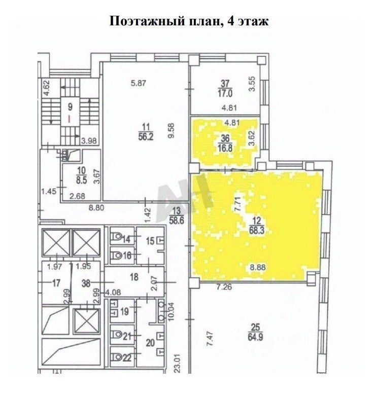 Помещение готово к въезду с 15 марта 2026 года и имеет отделку: полы из мрамора, стены под покраску, большие окна. Планировка состоит из 3-х закрытых кабинетов + опен-спейс, текущий арендатор очень разумно зонировал площадь.