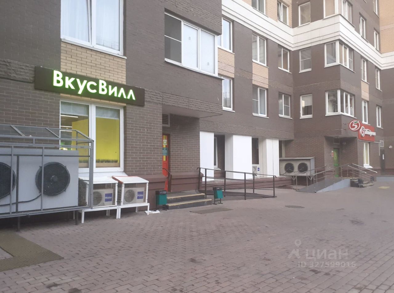 1 этаж. 1 линия, свободная планировка, парковка, Вывеска и центральный вход с фасадной стороны ЖК бизнес-класса Катрин Хаус, состоящего из трех 23-этажных корпусов.