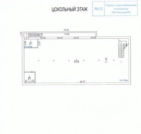 1117007. Предлагаем помещение свободного назначения, площадью 313.9 кв. м, расположенное на цокольном этаже 2-этажного административного здания.