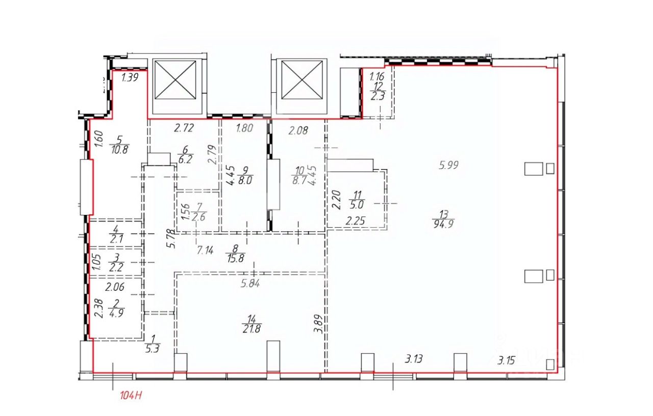 -есть возможность объединить с соседним блоком (общая площадь 190,6 кв. м.);