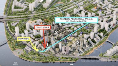 Помещение — на линии основного пешеходного потока от жилых корпусов к набережной