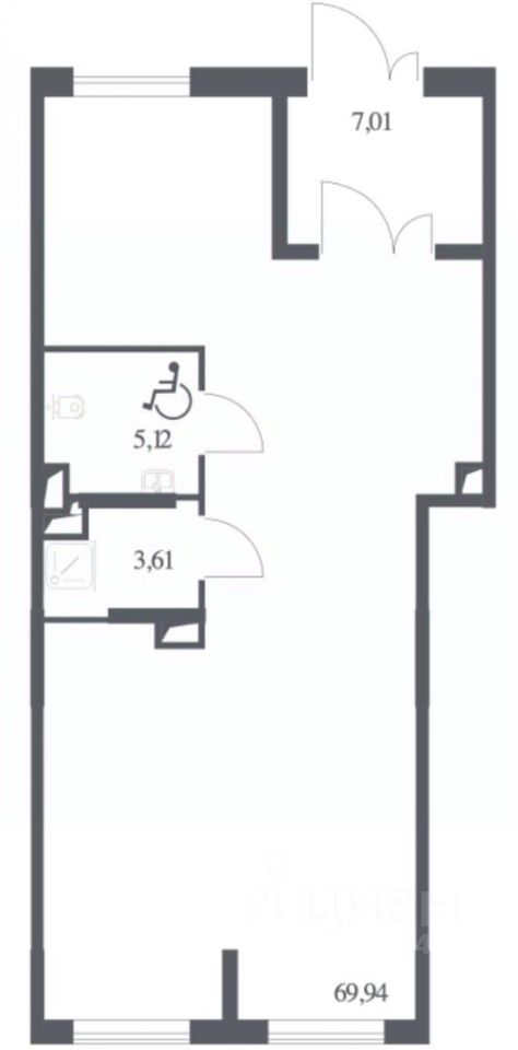 Отдельный вход с улицы, витринные окна, открытая планировка, высокие потолки. Есть место для вывески.