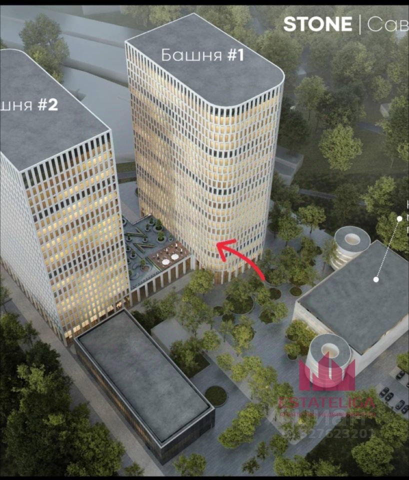 Id 61468. Продажа офиса класса А в бизнес-центре STONE Савеловская. Башня Tower 1, этаж 11/24. Ввод в эксплуатацию: 2025 год.