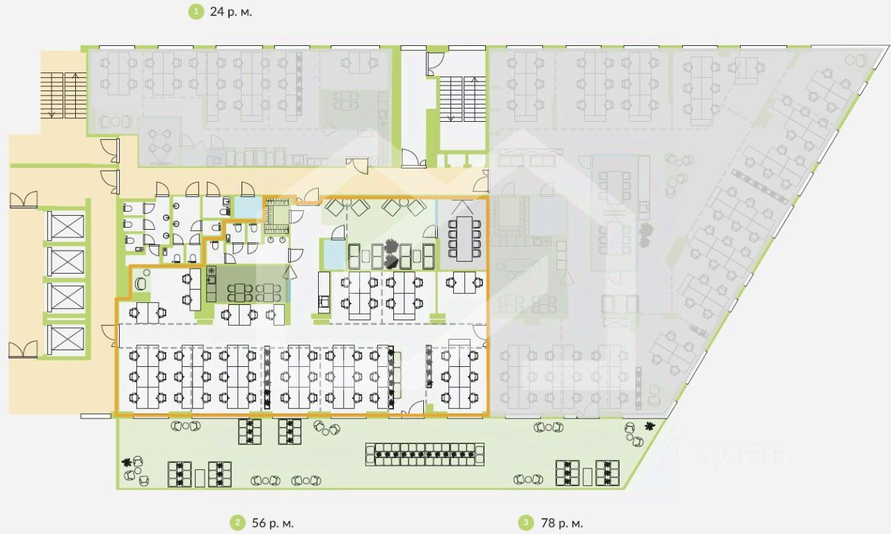 1067900. Предлагаем в аренду сервисный офис площадью 392 кв. м, на 56 рабочих места, расположенный в бизнес-центре "Technopark Plaza"