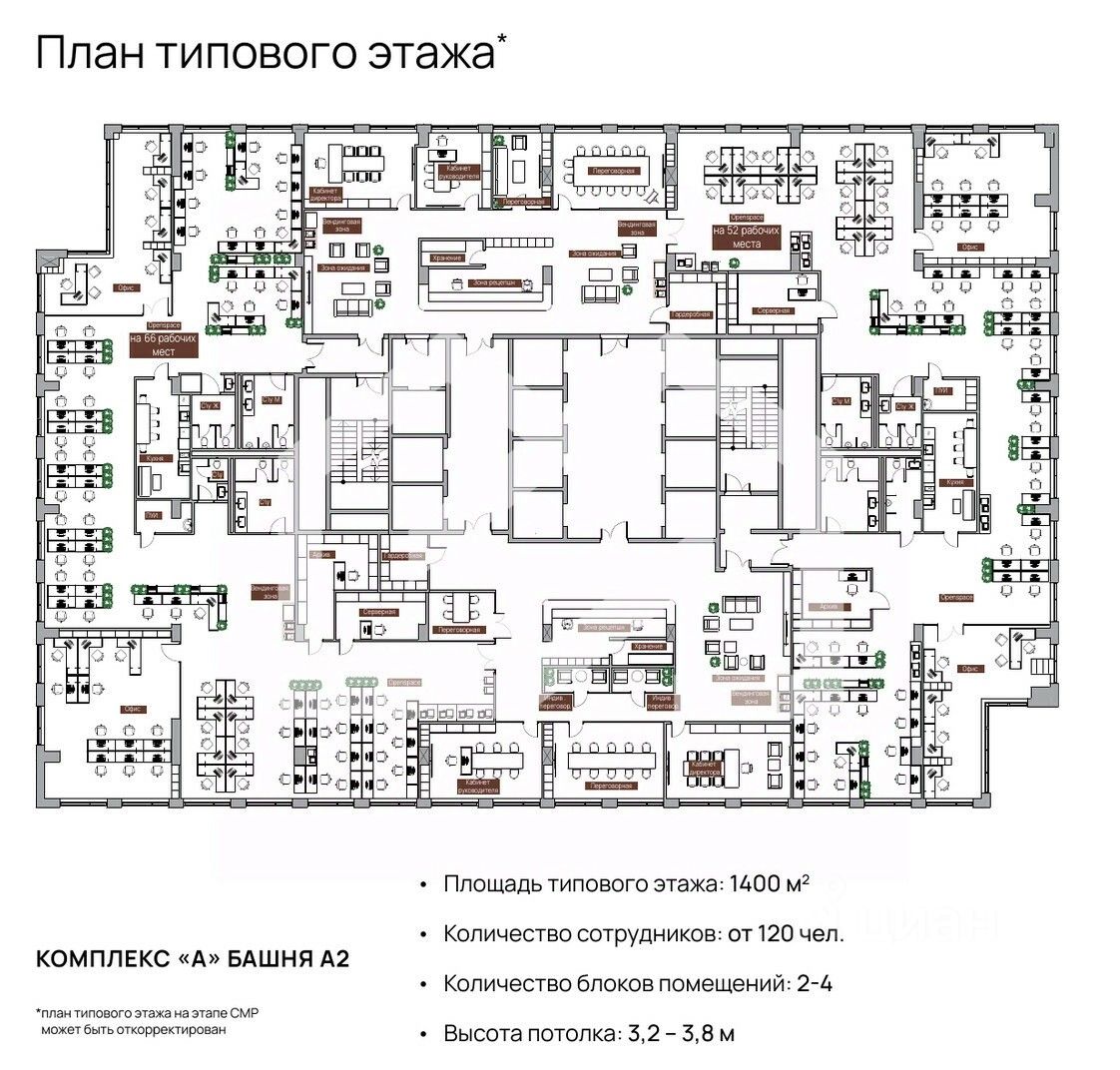 1125356. Предлагаем в аренду офисное помещение площадью 1641 кв. м, расположенное в бизнес-центре "Технопарк ЗИЛ, Башня А2"