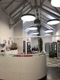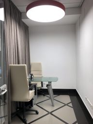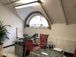 Планировка: Кабинетная система на 1-ом этаже, 2-й этаж: зона руководства с ресепшн, кабинет руководителя (с комнатой отдыха и душем), переговорная/конференц-зал и рабочие кабинеты. Цоколь: кухня-столовая, помещение для водителей и охраны, архив.