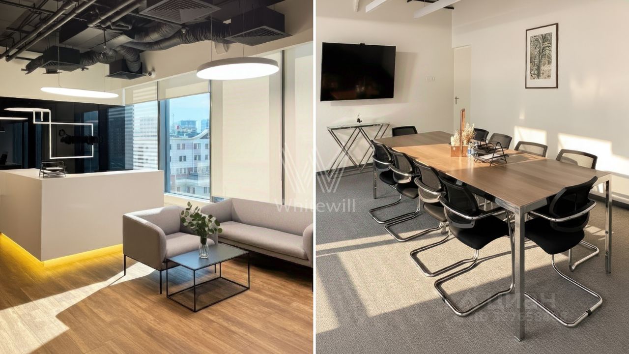 Офис площадью 363 м² целиком занимает 7 этаж корпуса В в бизнес-центре Wall Street. Внутри комбинированная планировка с качественной отделкой в контрастных оттенках, высота потолков составляет 3-5 метров. Предусмотрены 40 рабочих мест. Спланированы зона ресепшн, open space, 4 кабинета, серверная, мини-кухня, кофе-поинт и санузлы. Установлены системы приточно-вытяжной вентиляции и центрального кондиционирования. Вход осуществляется через общее лобби в здании по пропускам.