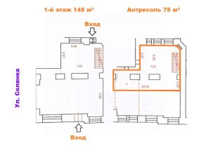 1-й этаж 145 м², антресоль 75 м².