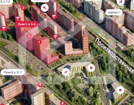 -ЖК состоит из 16 корпусов переменной этажности (от 19 до 24 этажей), рассчитанных на 14 361 квартиру;