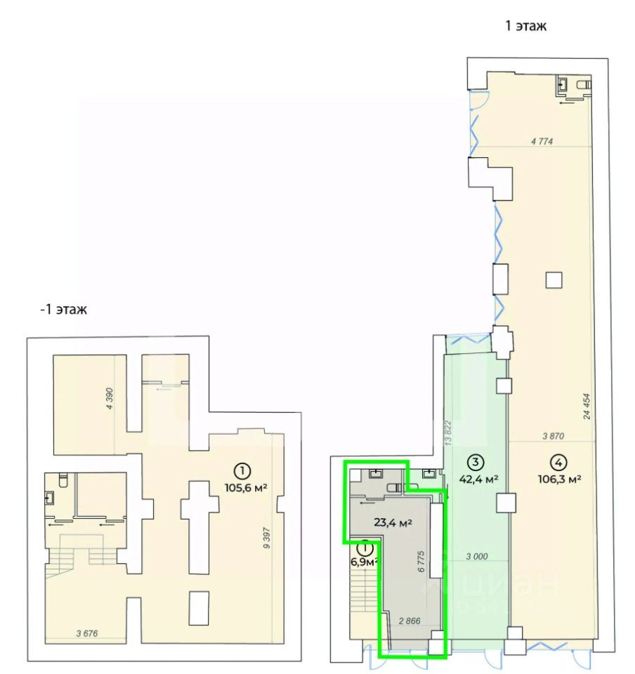 1010128. Предлагаем торговое помещение, площадью 23,4 кв. м., расположенное на 1 этаже 4-этажного административного здания. Блок 2.