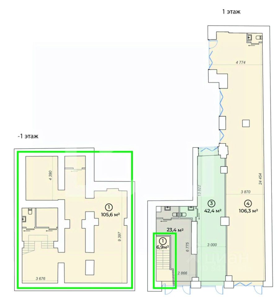 1010126. Предлагаем торговое помещение, площадью 112,5 кв. м., расположенное на -1 этаже 4-этажного административного здания. Блок 1.