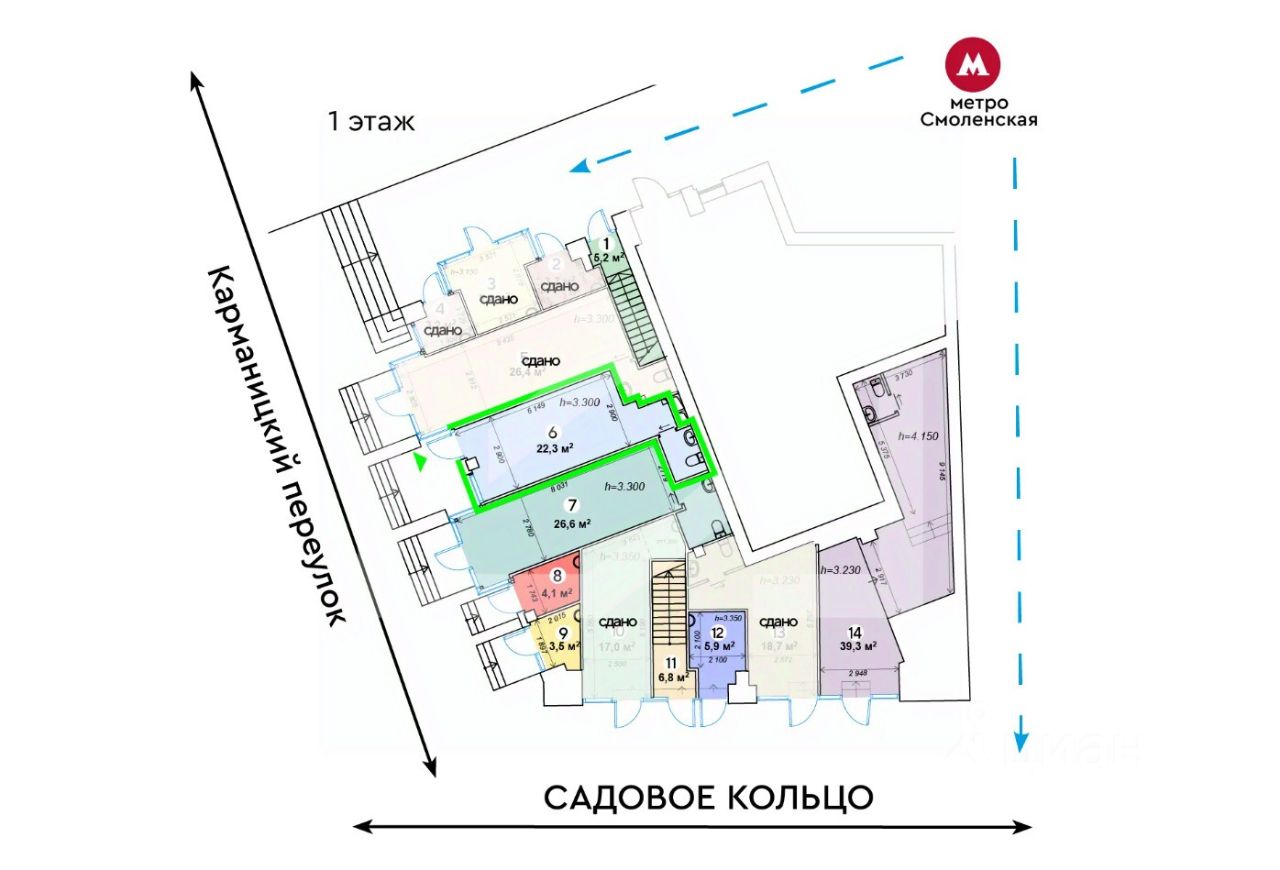 877582. Предлагаем помещение свободного назначения в бизнес-центре "Арбат", площадью 22.3 кв. м, расположенное на первом этаже 9-этажного здания.