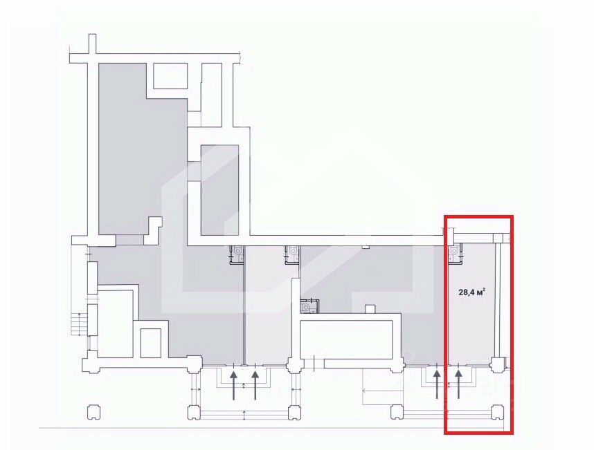 1022286. Предлагаем помещение свободного назначения, площадью 28.4 кв. м, расположенное на первом этаже 14-этажного жилого дома.