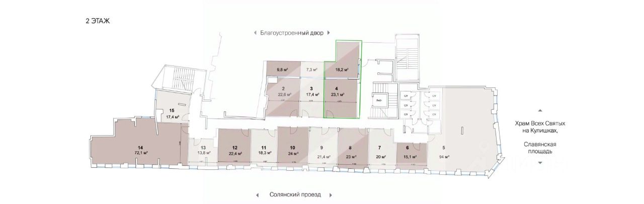 958055. Предлагаем помещение свободного назначения, общей площадью 41.3 кв. м, расположенное на втором этаже 3-этажного административного здания.