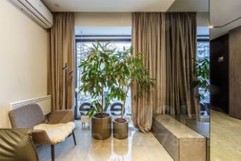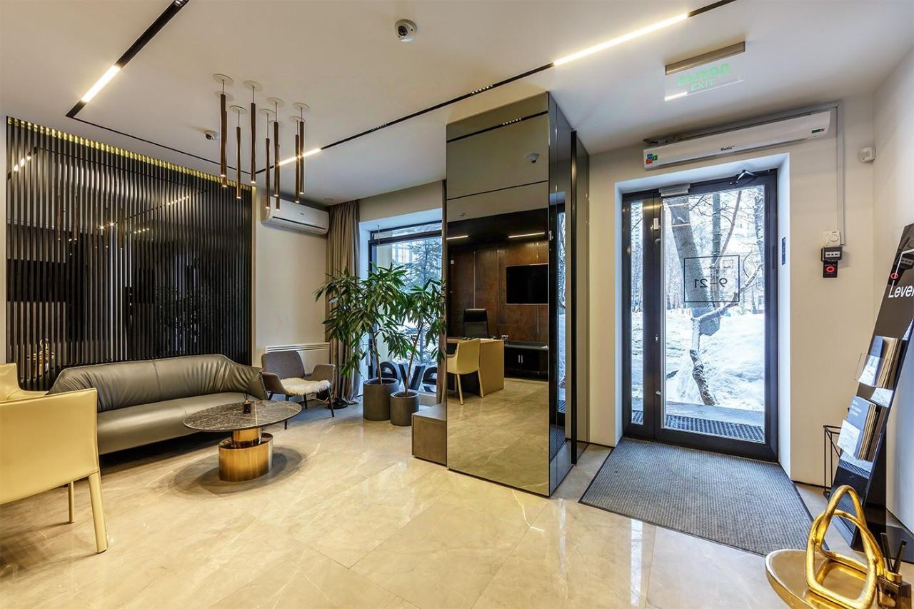 До этого в помещении располагался офис продаж Левел групп, в помещении выполнен прекрасный дизайнерский ремонт, установлены премиальные стеклопакеты на входе и окнах, сами окна существенно расширены относительно окон по проекту.