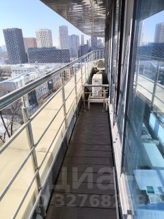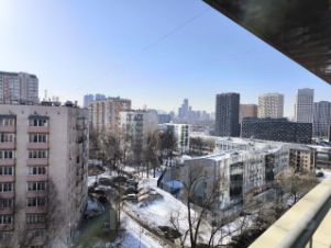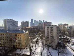 Общая площадь 52,6 м2, жилой площадью 48,9 м2, терраса 3,7 м2. Вид с террасы на Москва-Сити.