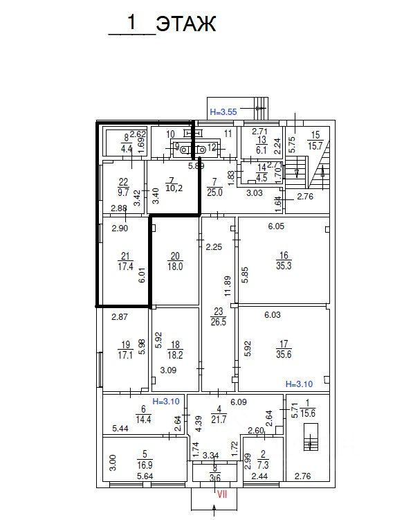 Аренда помещения свободного назначения площадью 46,8 м2 на первом этаже торгово-офисного центра.