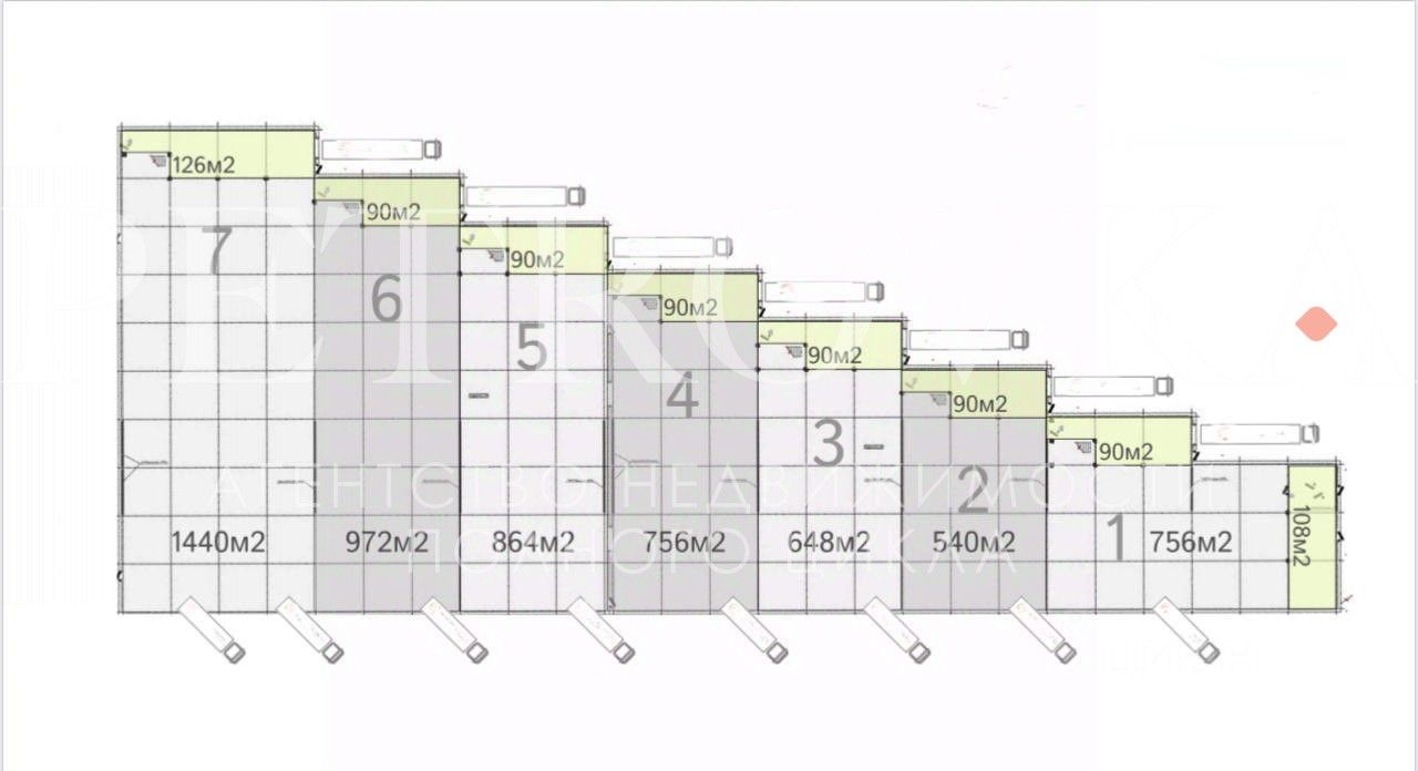 7 ворот для большегрузов (высота от уровня земли 1,2 м)