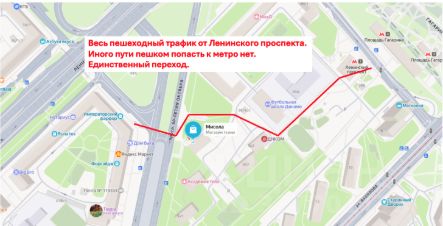 Напротив помещения подземный переход основная артерия ведущая к метро и МЦК всех жителей, живущих на противоположной стороне проспекта.