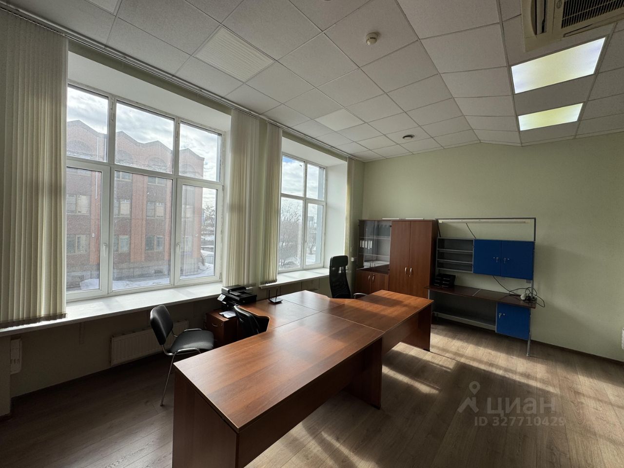 Большие панорамные окна обеспечивают много естественного света, высота потолков — 3 метра, что делает пространство комфортным для работы.