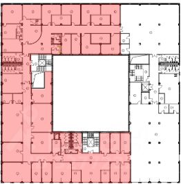 Высокие потолки, больше 4 мокрых точек, много нарезок на кабинеты.