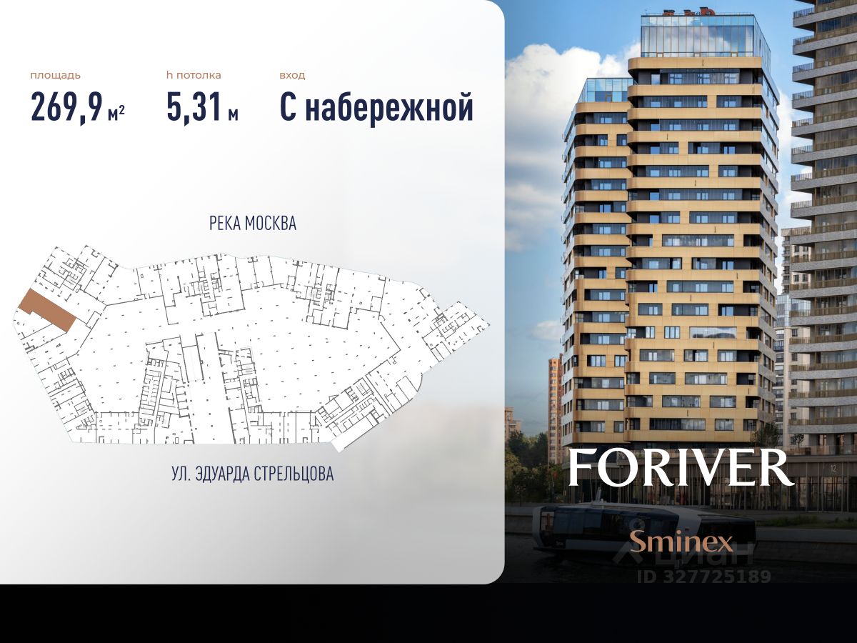 Готовность помещения в сентябре 2026. Сдаётся в аренду торговое помещение на первой линии Москвы - реки площадью 269,9 кв.м. в премиальном жилом квартале Foriver.
