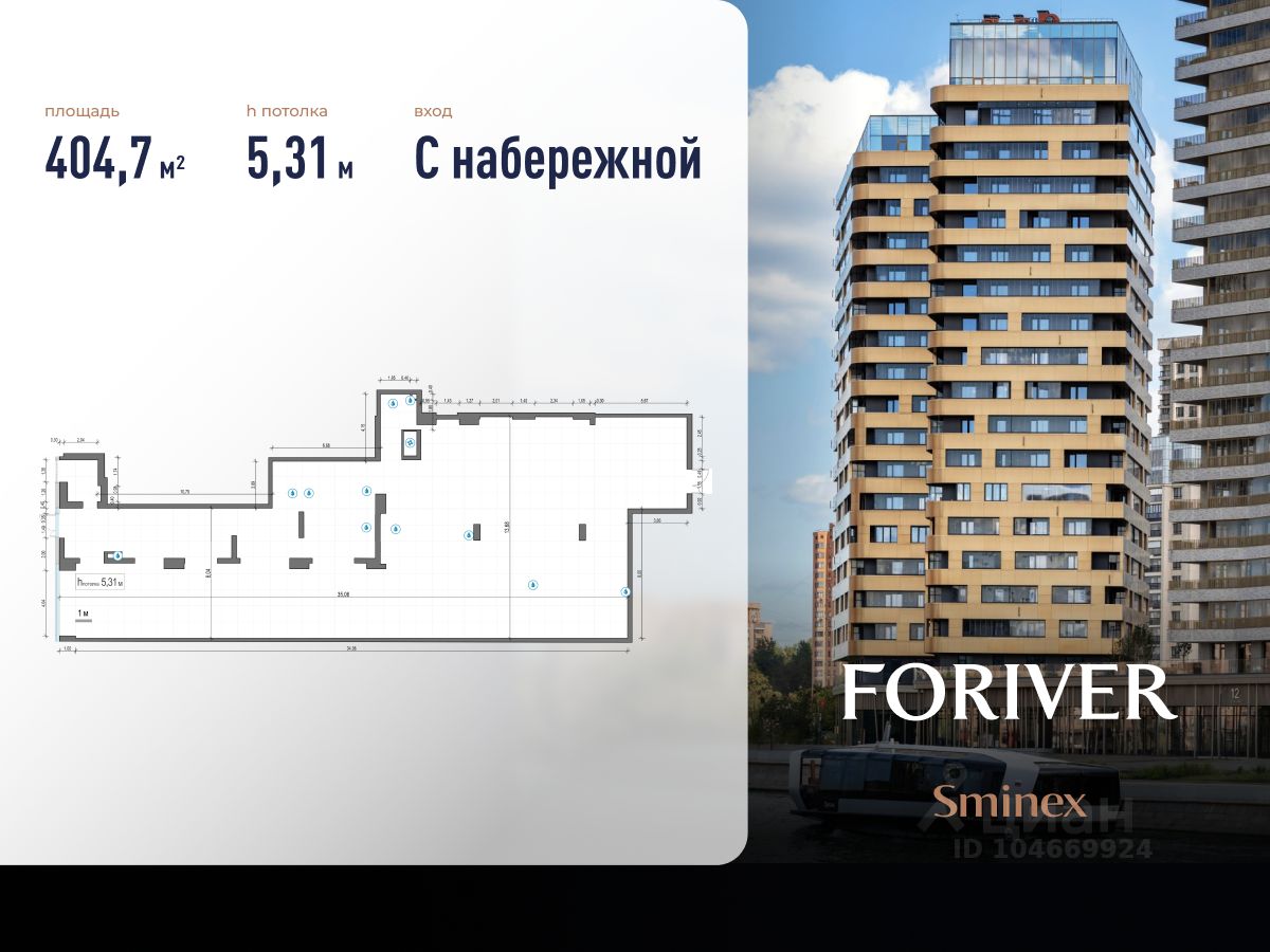 Готовность помещения в сентябре 2026. Сдаётся в аренду помещение на первой линии Москвы - реки площадью 404,7 кв.м. в премиальном жилом квартале Foriver.