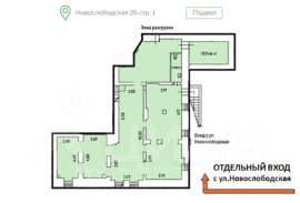 - Первая линия улицы Новослободская, отдельный вход с фасада здания.