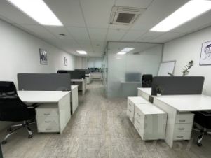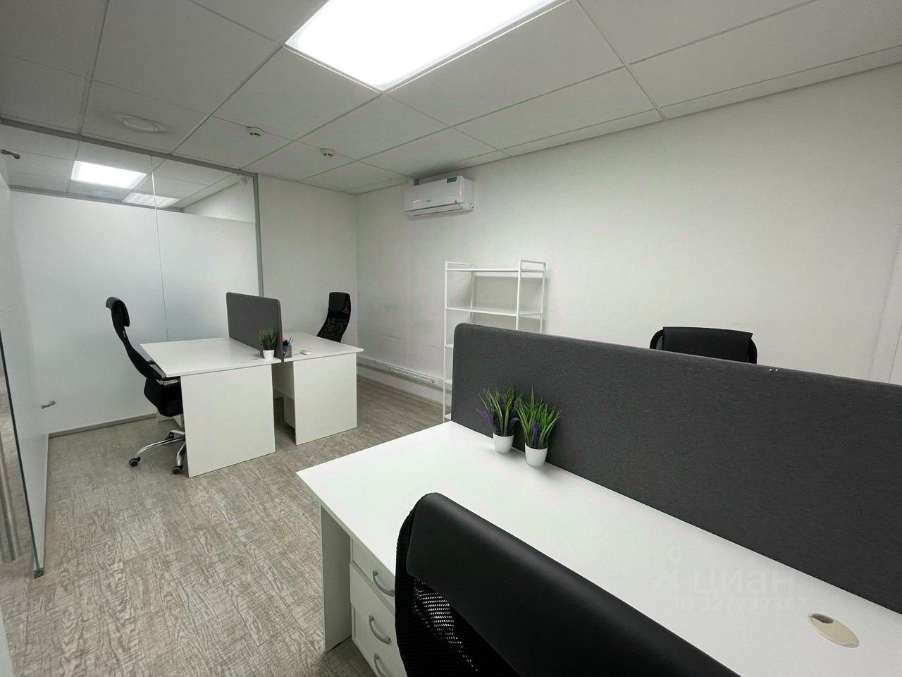 Офис укомплектован на 13 рабочих мест, полностью меблирован (все, что на фото), есть 2 отделенных кабинета: руководителя с переговорным столом (на 6-7 чел.) и кабинет на 4 рабочих места.