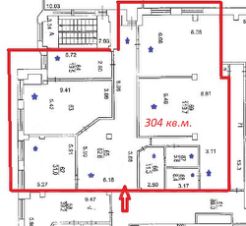 304 кв.м., - смешанная планировка. Большие окна с хорошим видом на улицу.